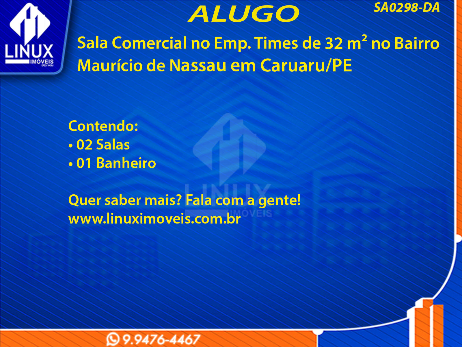 R$2.500,00 / ALUGUELSala Comercial no Emp. Times em Caruaru/PE p/ Locação (SA0298-DA)