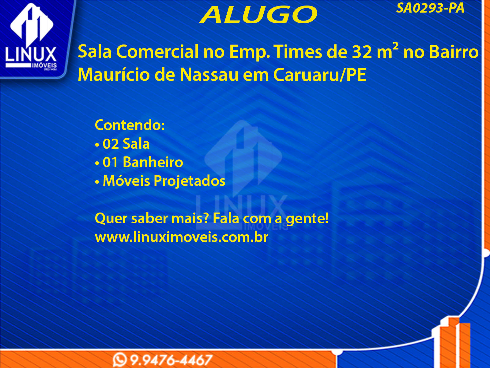 R$3.500,00 / ALUGUELSala Comercial no Emp. Times em Caruaru/PE p/ Locação (SA0293-PA)