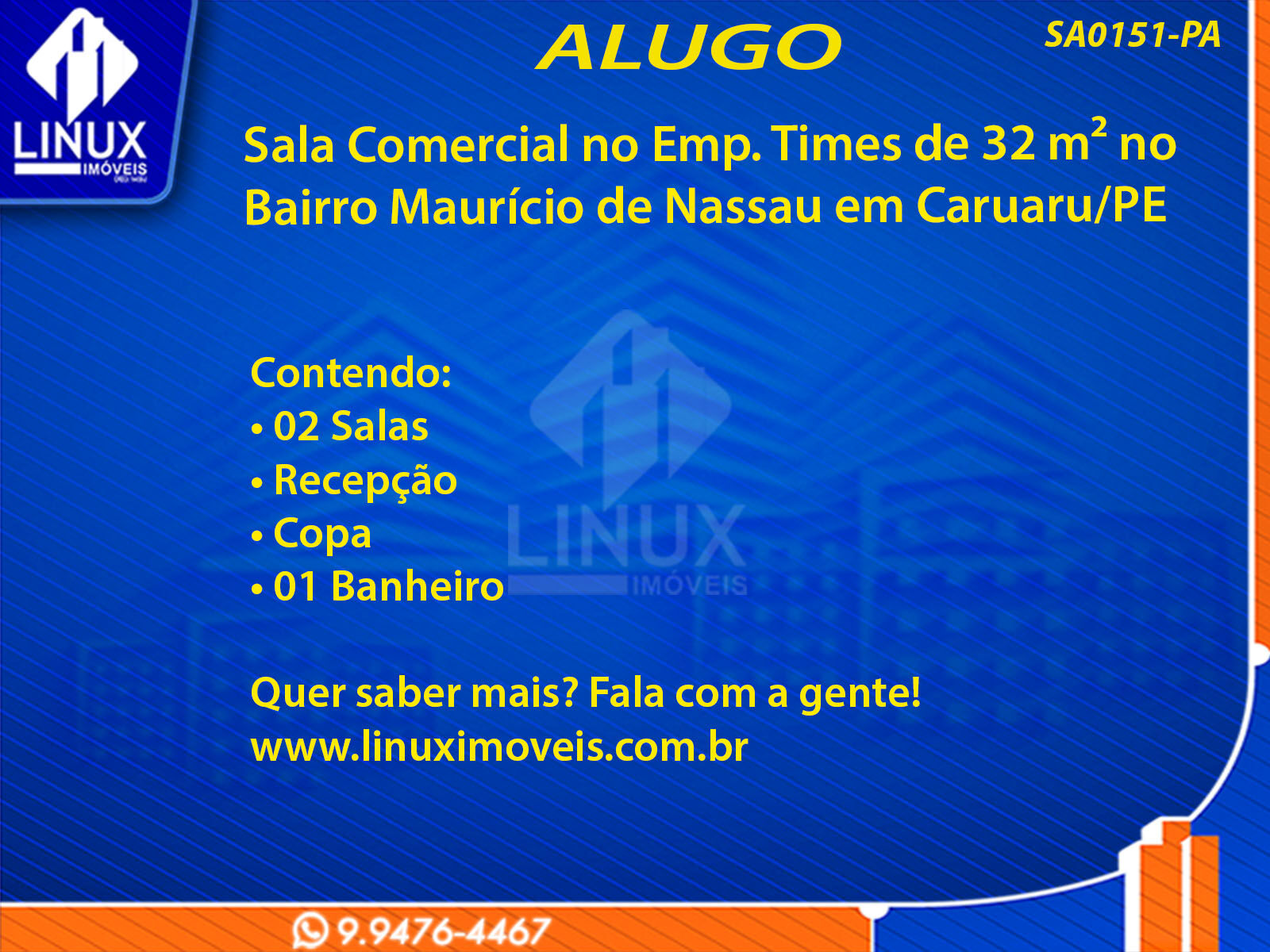 R$2.850,00 / ALUGUELSala Comercial no Emp. Times p/ Locação (SA0151-PA)