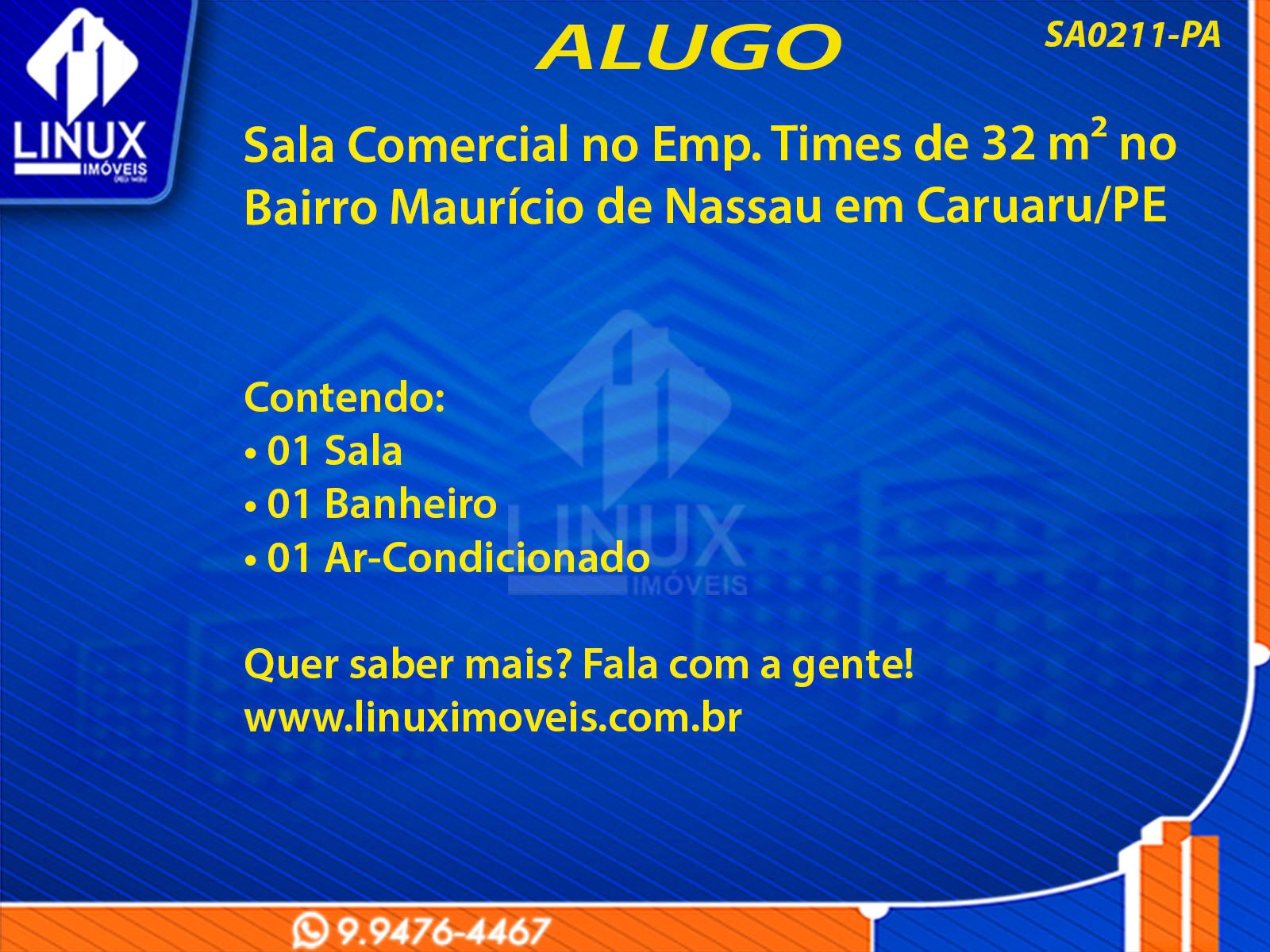 Sala Comercial no Emp. Times de 32 m² no Bairro Maurício de Nassau em Caruaru/PE