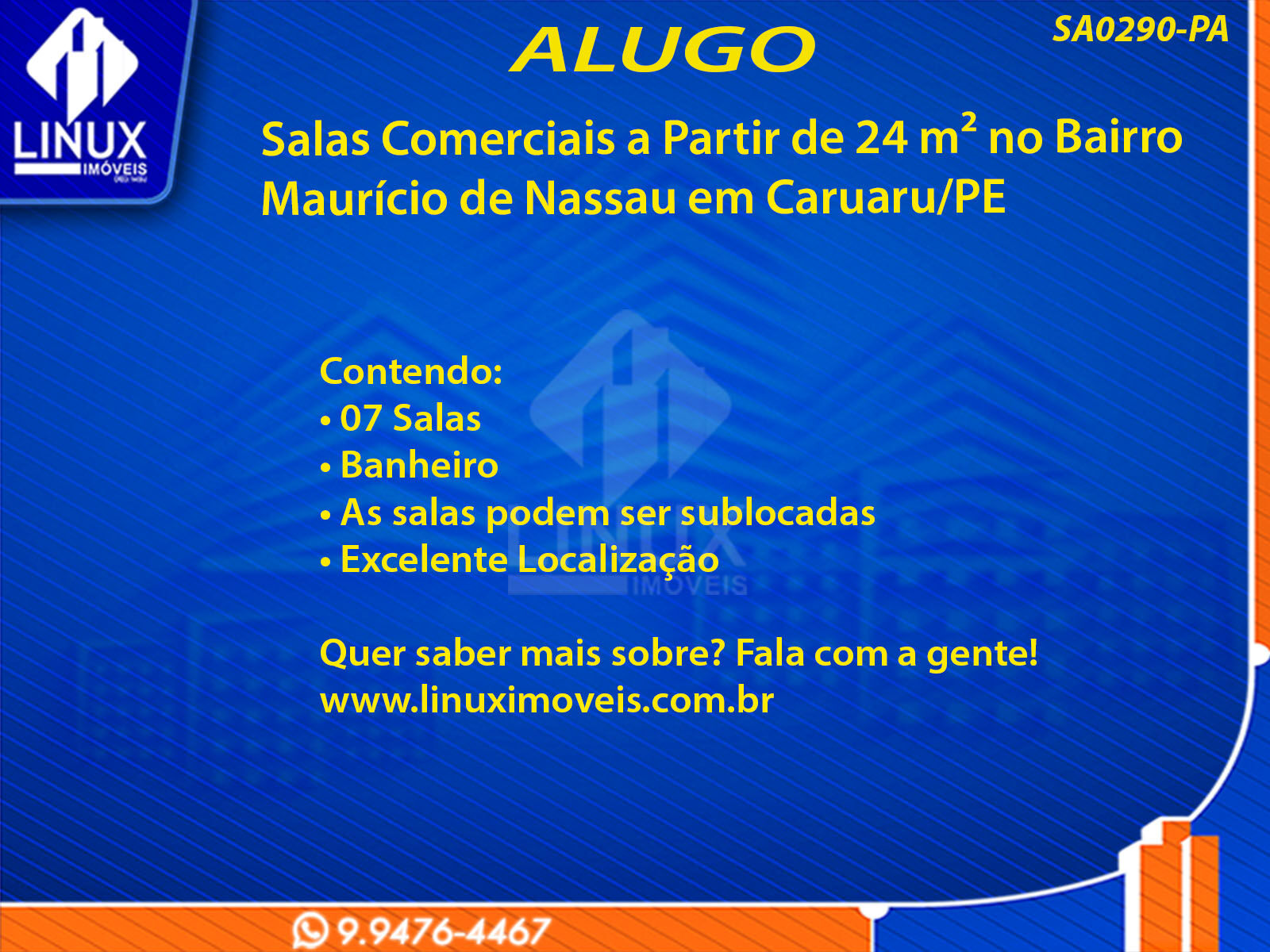 Salas Comerciais no Bairro Maurício de Nassau em Caruaru/PE p/ Locação (SA0290-PA)
