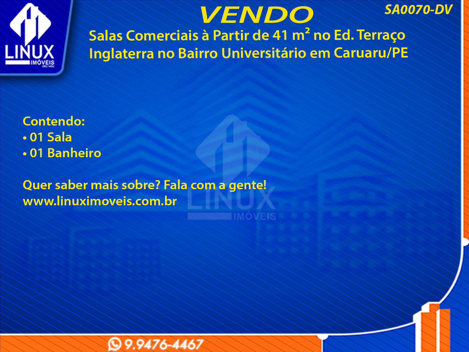 Salas Comerciais à Partir de 41 m² no Ed. Terraço Inglaterra no Bairro Universitário em Caruaru/PE