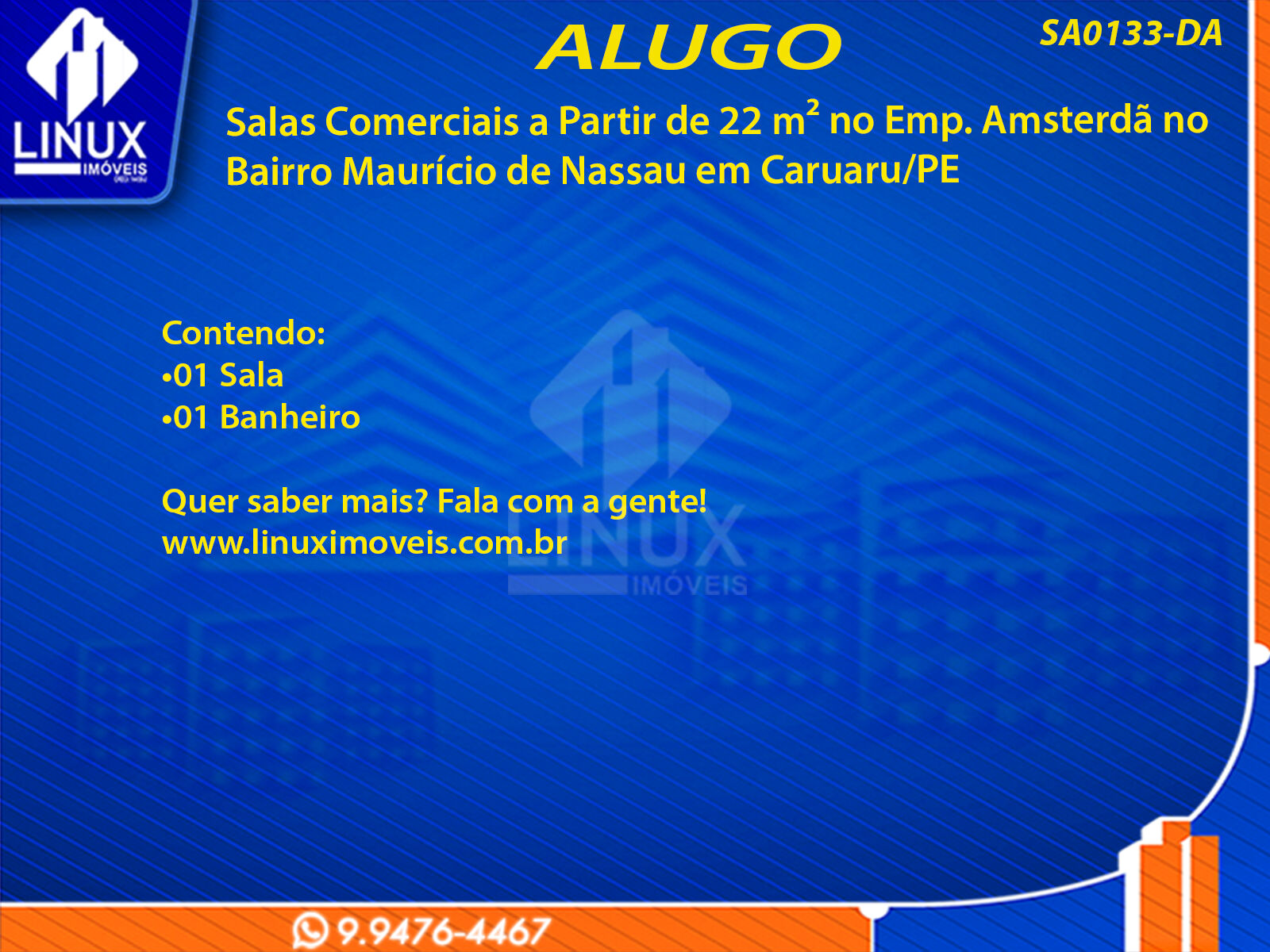 Salas Comerciais no Emp. Amsterdã em Caruaru/PE p/ Locação (SA0133-DA)