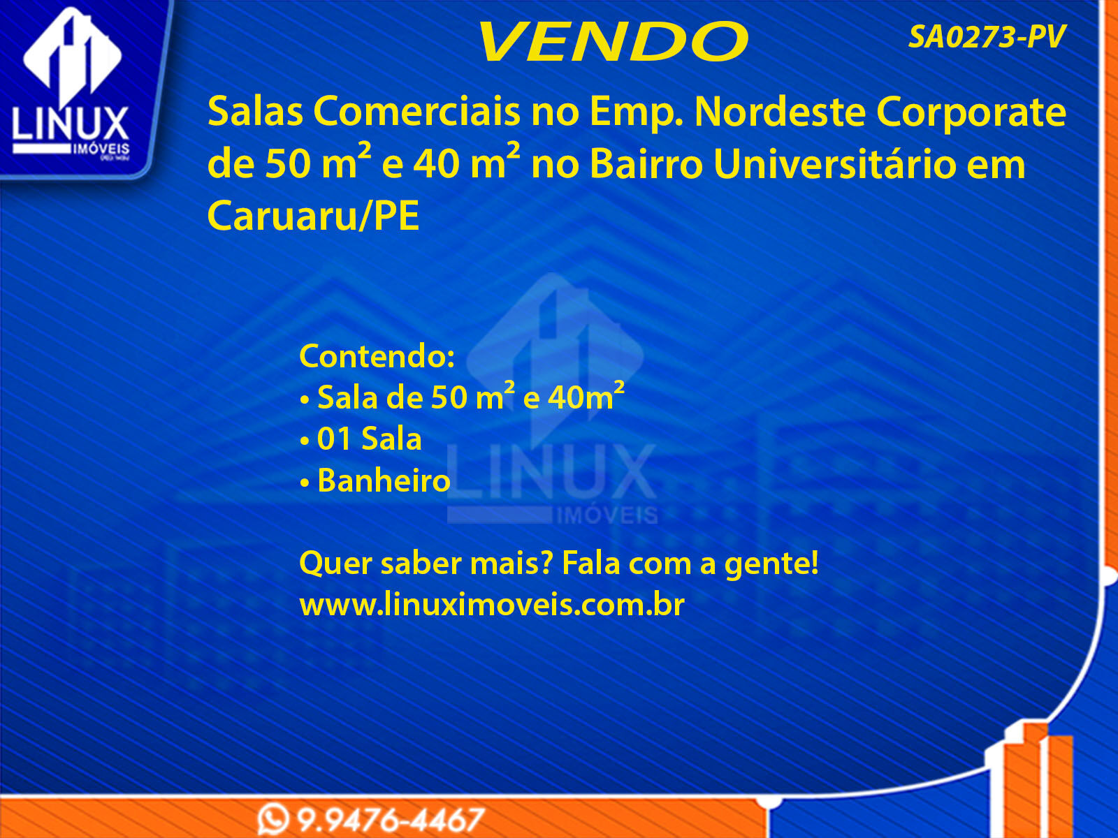 Salas Comerciais no Emp. Nordeste Corporate de 50 m² e 40 m² no Bairro Universitário em Caruaru/PE