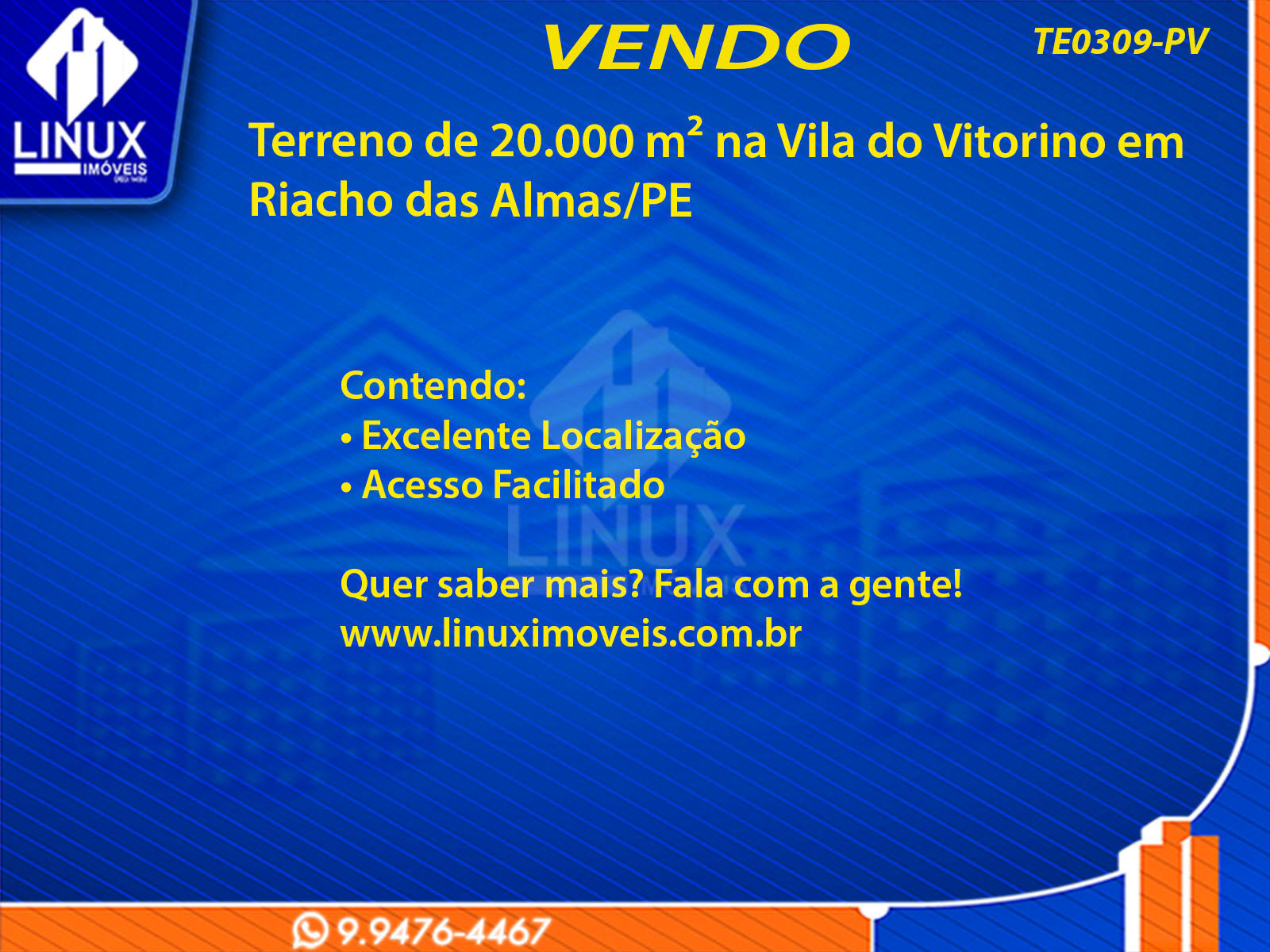 Terreno de 20.000 m² na Vila do Vitorino em Riacho das Almas/PE