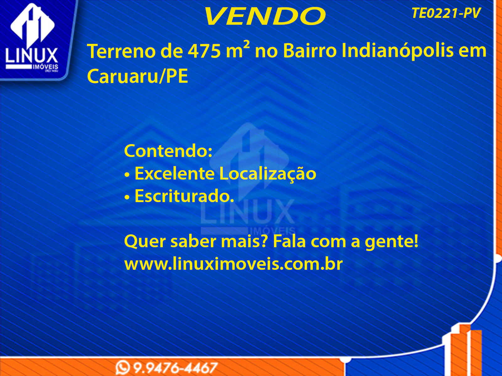 Terreno de 475 m² no Bairro Indianópolis em Caruaru/PE