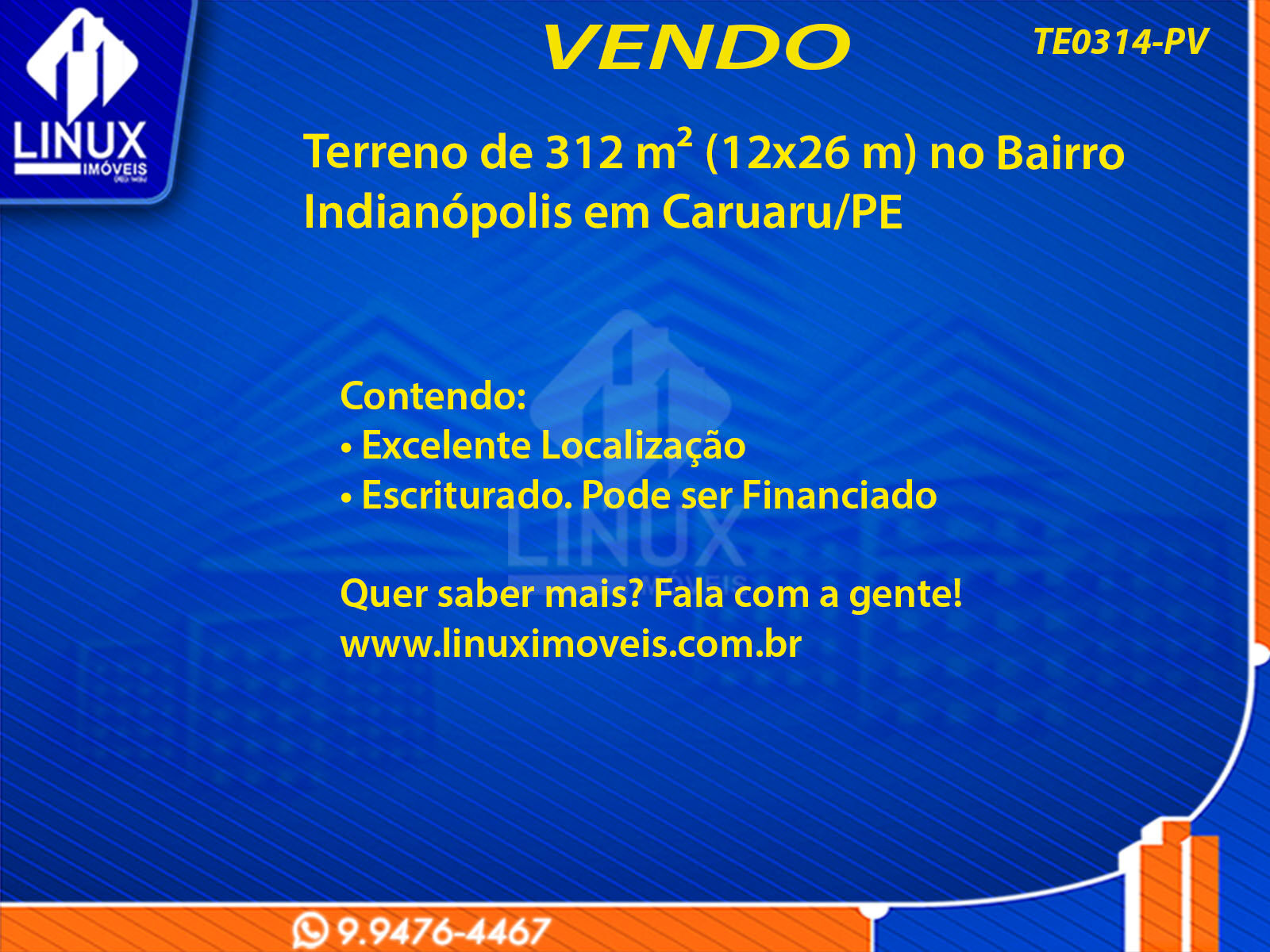 Terreno de 312 m² (12x26 m) no Bairro Indianópolis em Caruaru/PE
