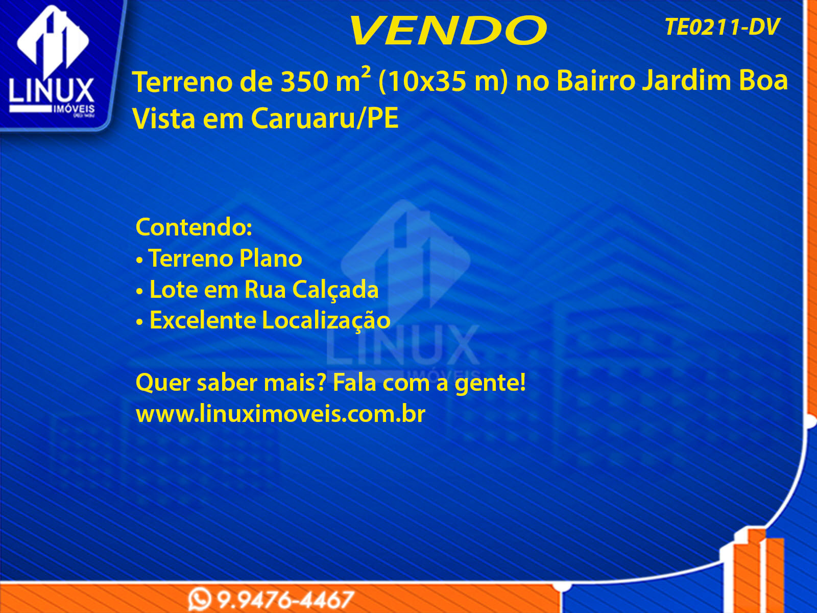 Terreno de 350 m² (10x35 m) no Bairro Jardim Boa Vista em Caruaru/PE