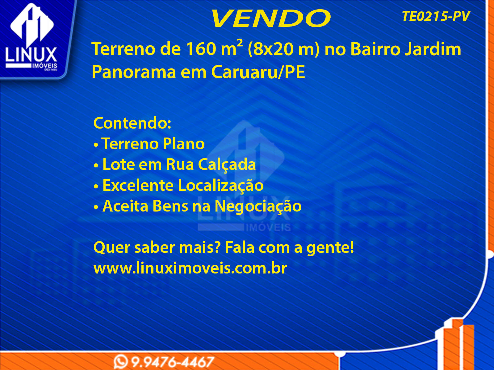 Terreno de 160 m² (8x20 m) no Bairro Jardim Panorama em Caruaru/PE