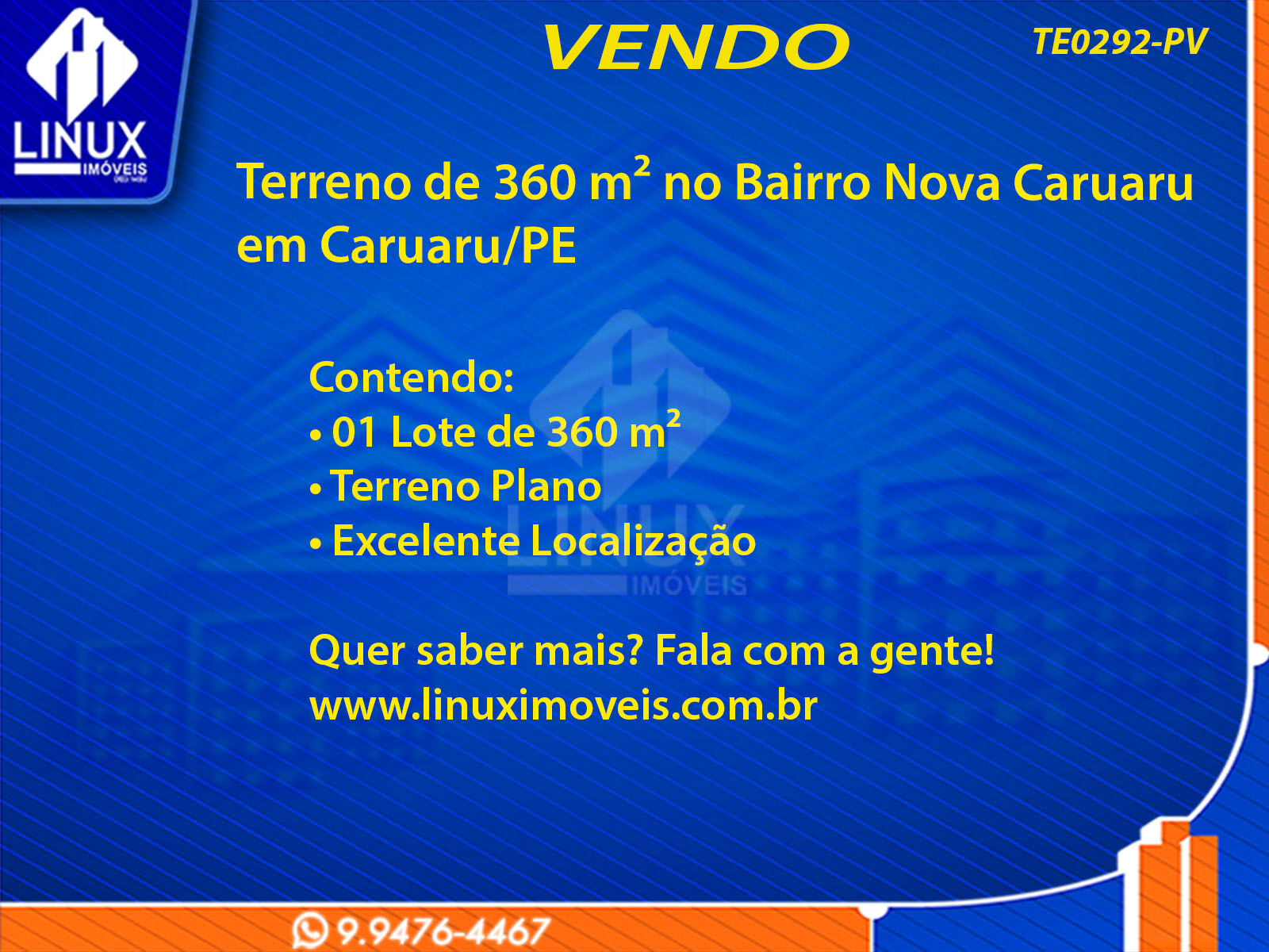 Terreno no Bairro Nova Caruaru em Caruaru/PE à Venda (TE0292-PV)