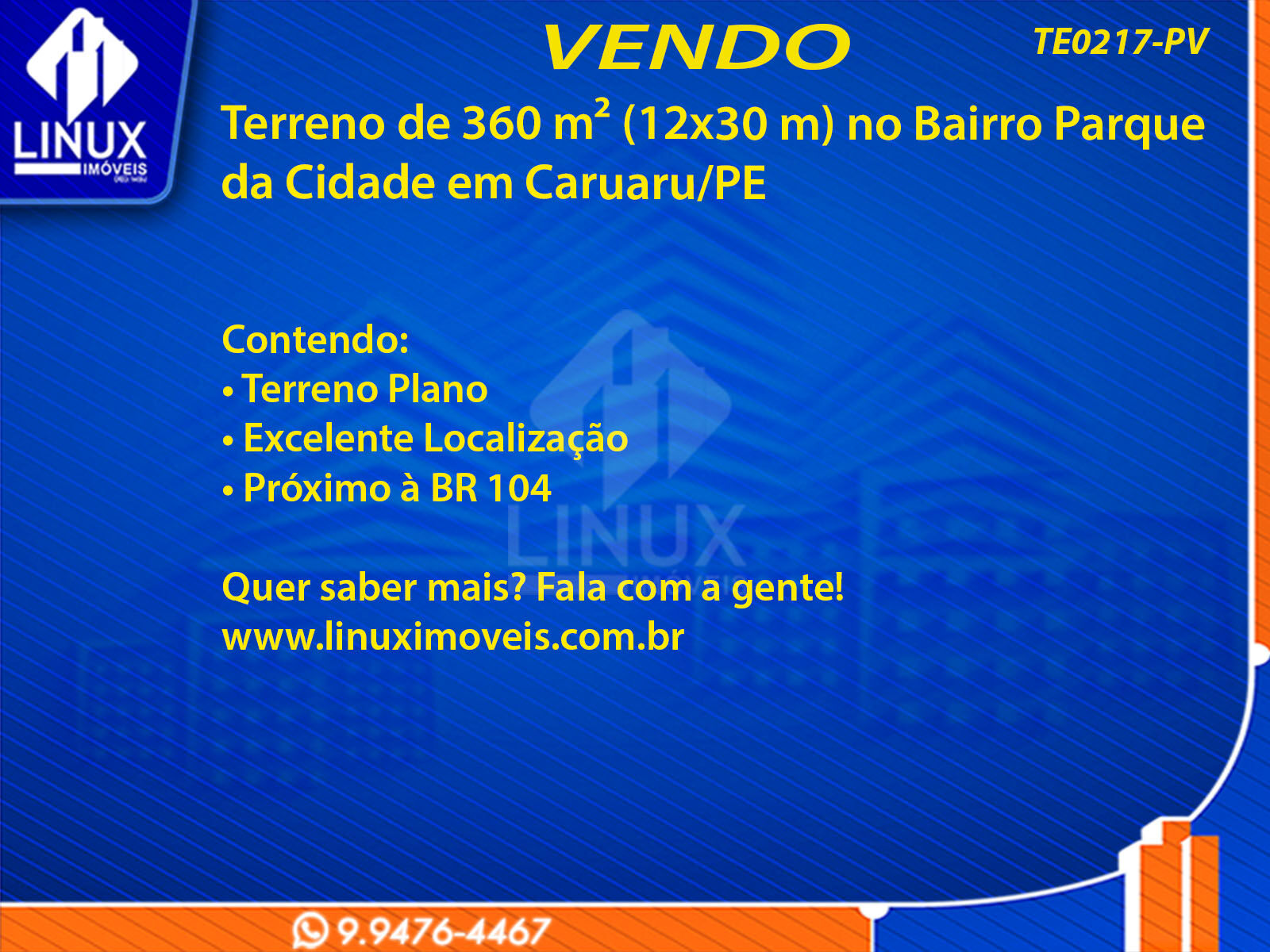 Terreno de 360 m² (12x30 m) no Bairro Parque da Cidade em Caruaru/PE