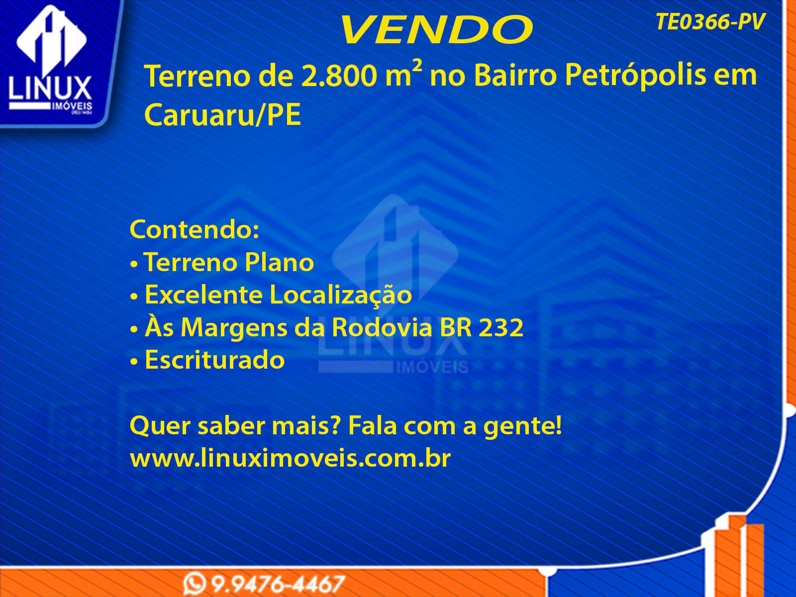 Terreno de 2.800 m² no Bairro Petrópolis em Caruaru/PE