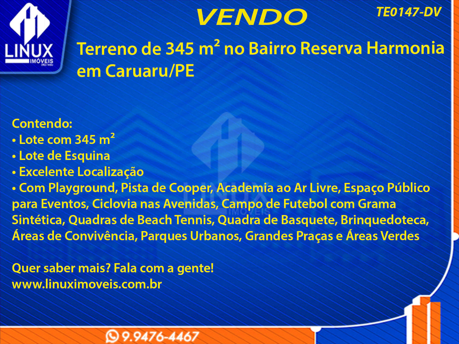 Terreno de 345 m² no Bairro Reserva Harmonia em Caruaru/PE