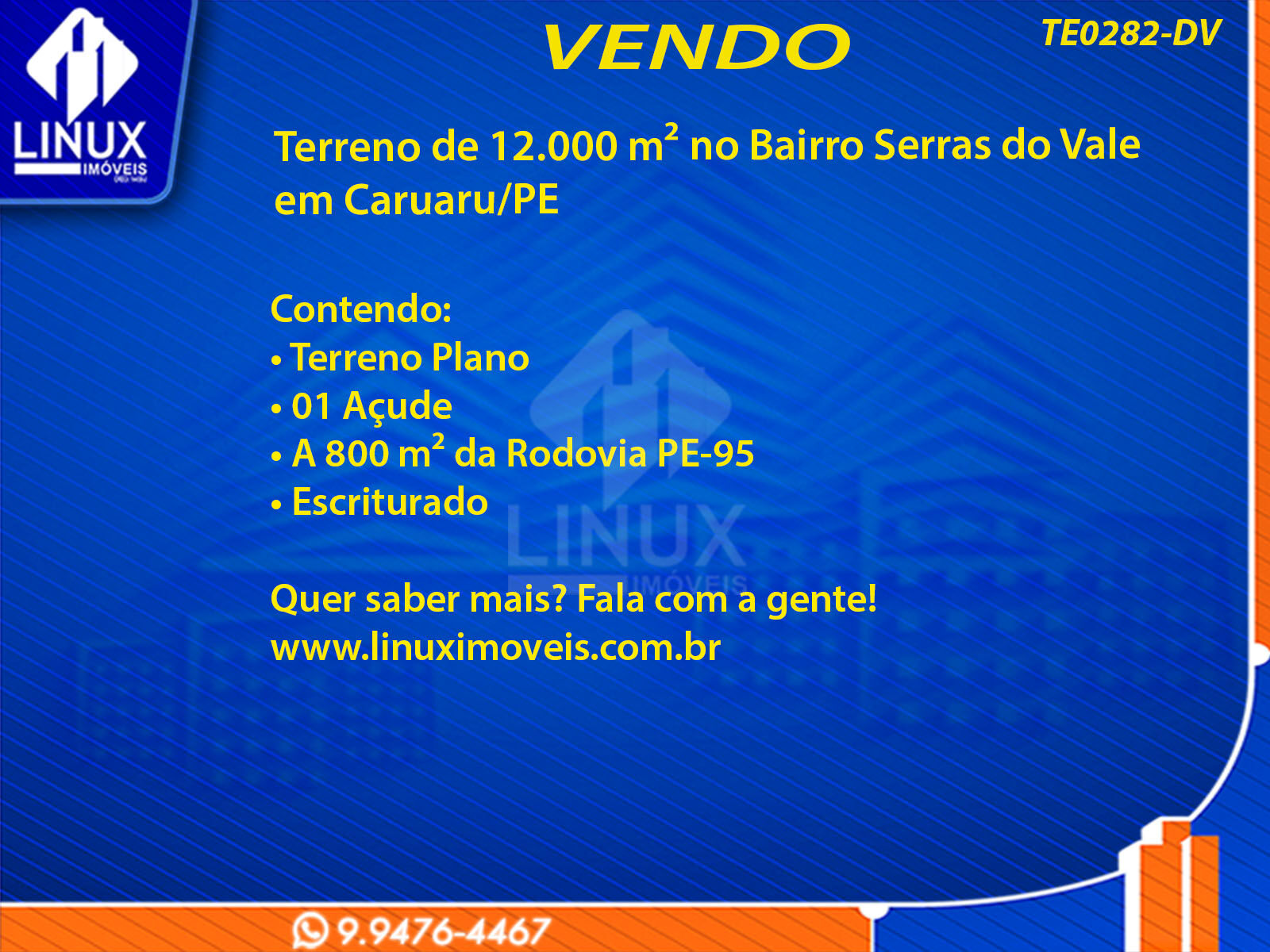 R$2.500.000,00 / VENDATerreno no Bairro Serras do Vale em Caruaru/PE à Venda (TE0282-DV)