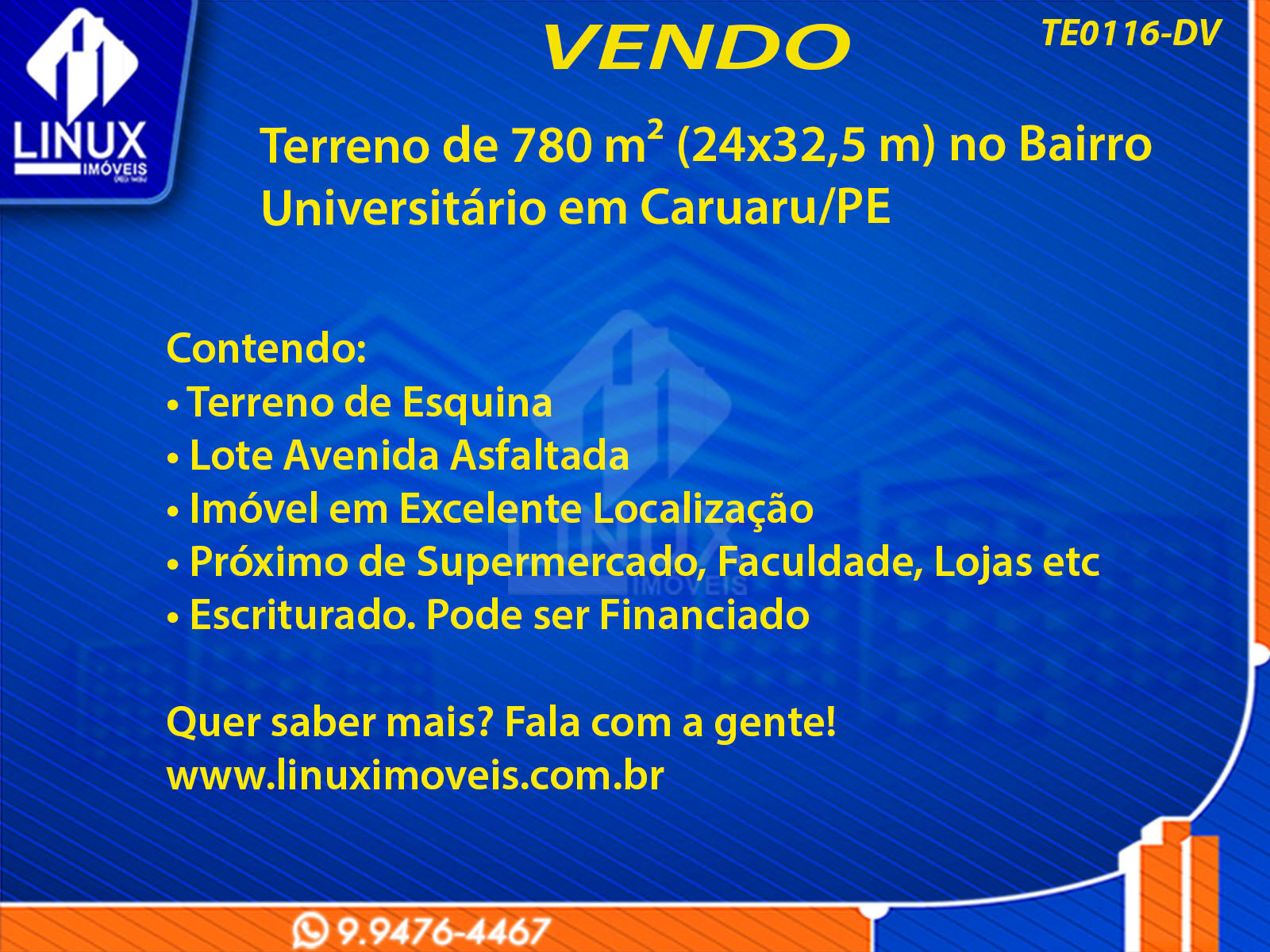 Terreno de 780 m² (24x32,5 m) no Bairro Universitário em Caruaru/PE