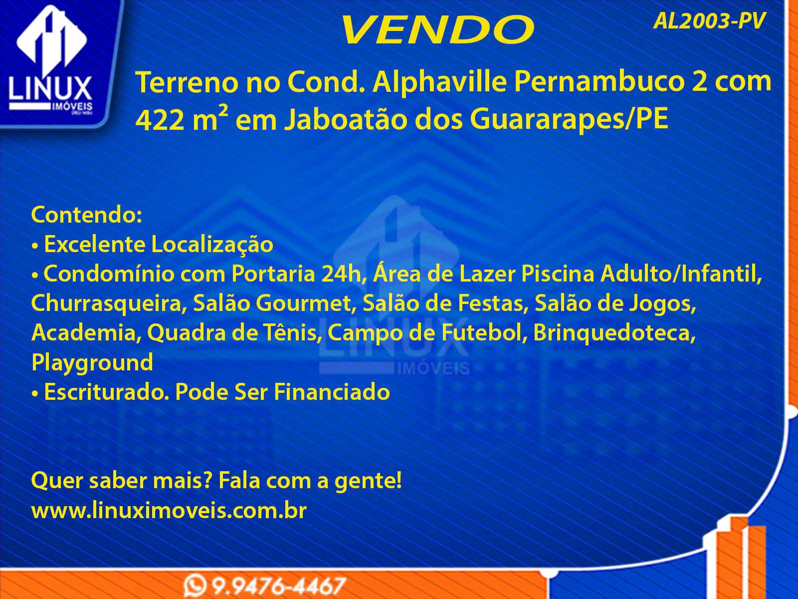 Terreno no Cond. Alphaville Pernambuco 2 à Venda (AL2003-PV)