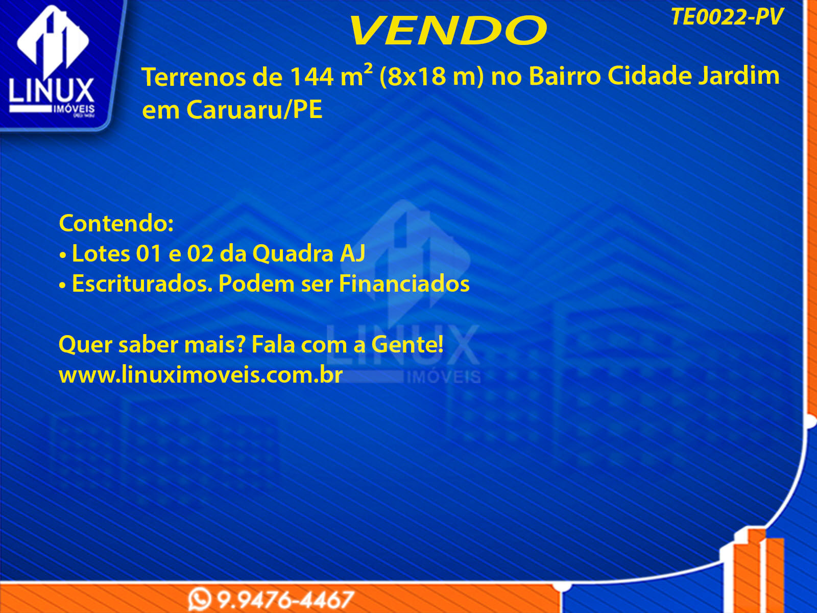 Terrenos de 144 m² (8x18 m) no Bairro Cidade Jardim em Caruaru/PE