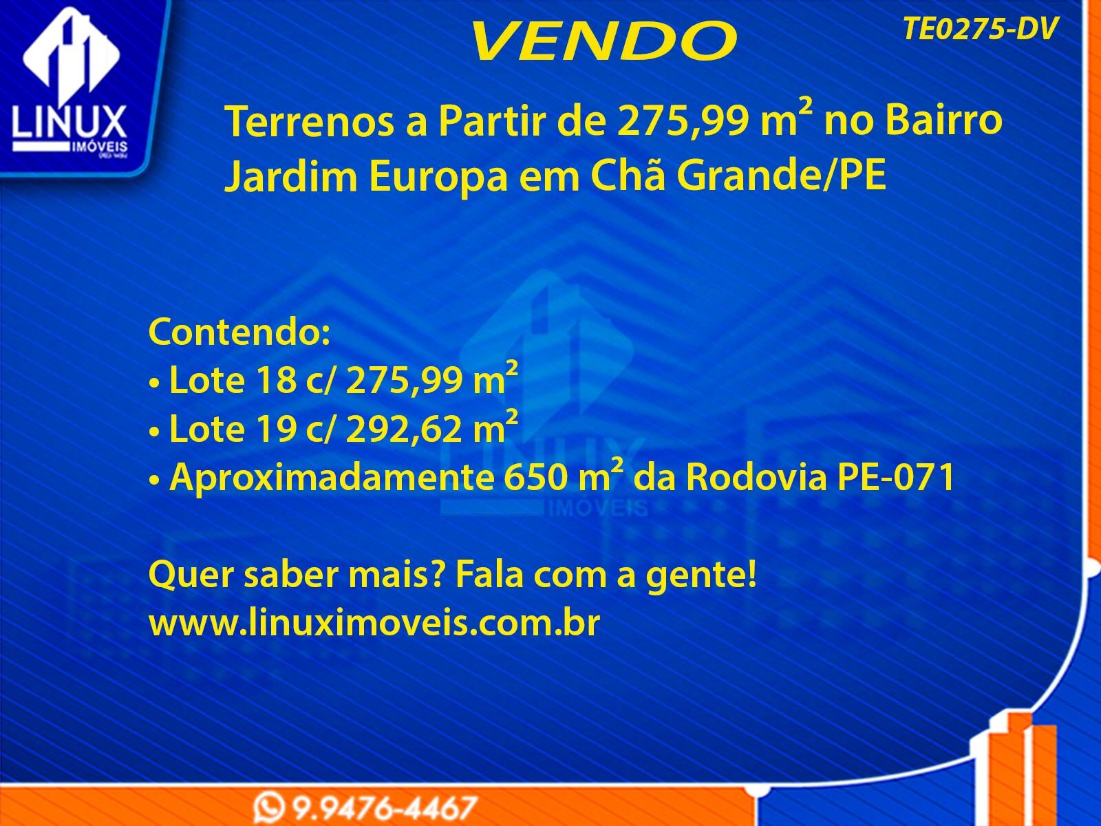 Terrenos no Bairro Jardim Europa em Chã Grande/PE à Venda (TE0275-DV)