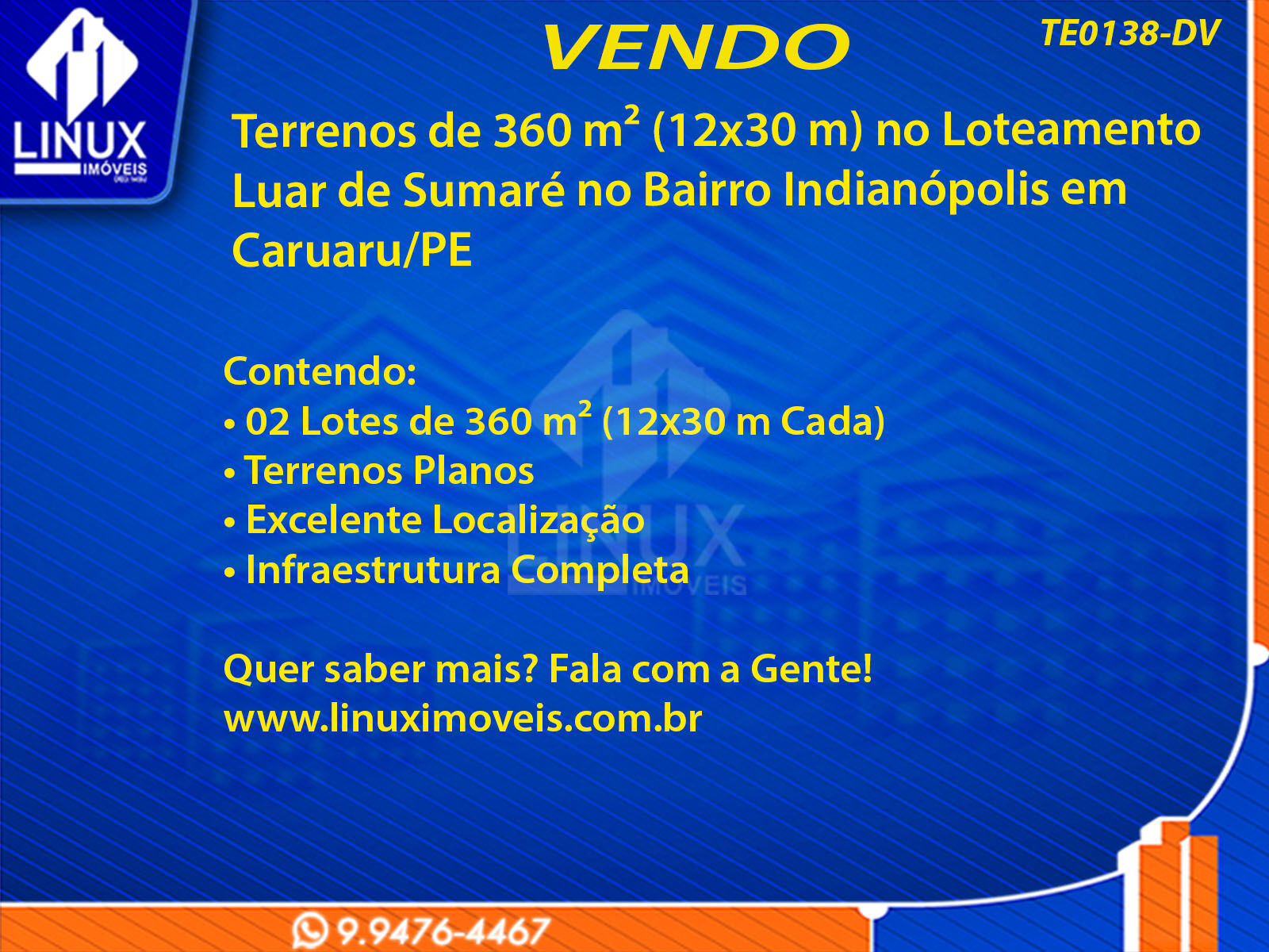 Terrenos de 360 m² (12x30 m) no Bairro Luar de Sumaré em Caruaru/PE
