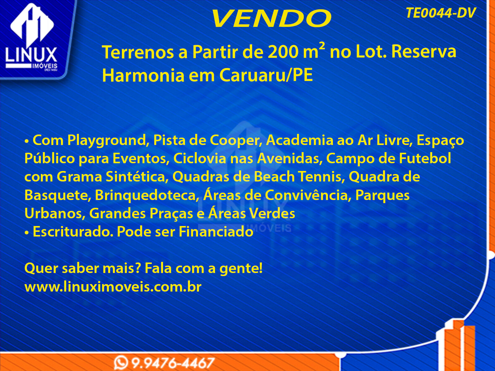 Terrenos a Partir de 200 m² no Bairro Reserva Harmonia em Caruaru/PE