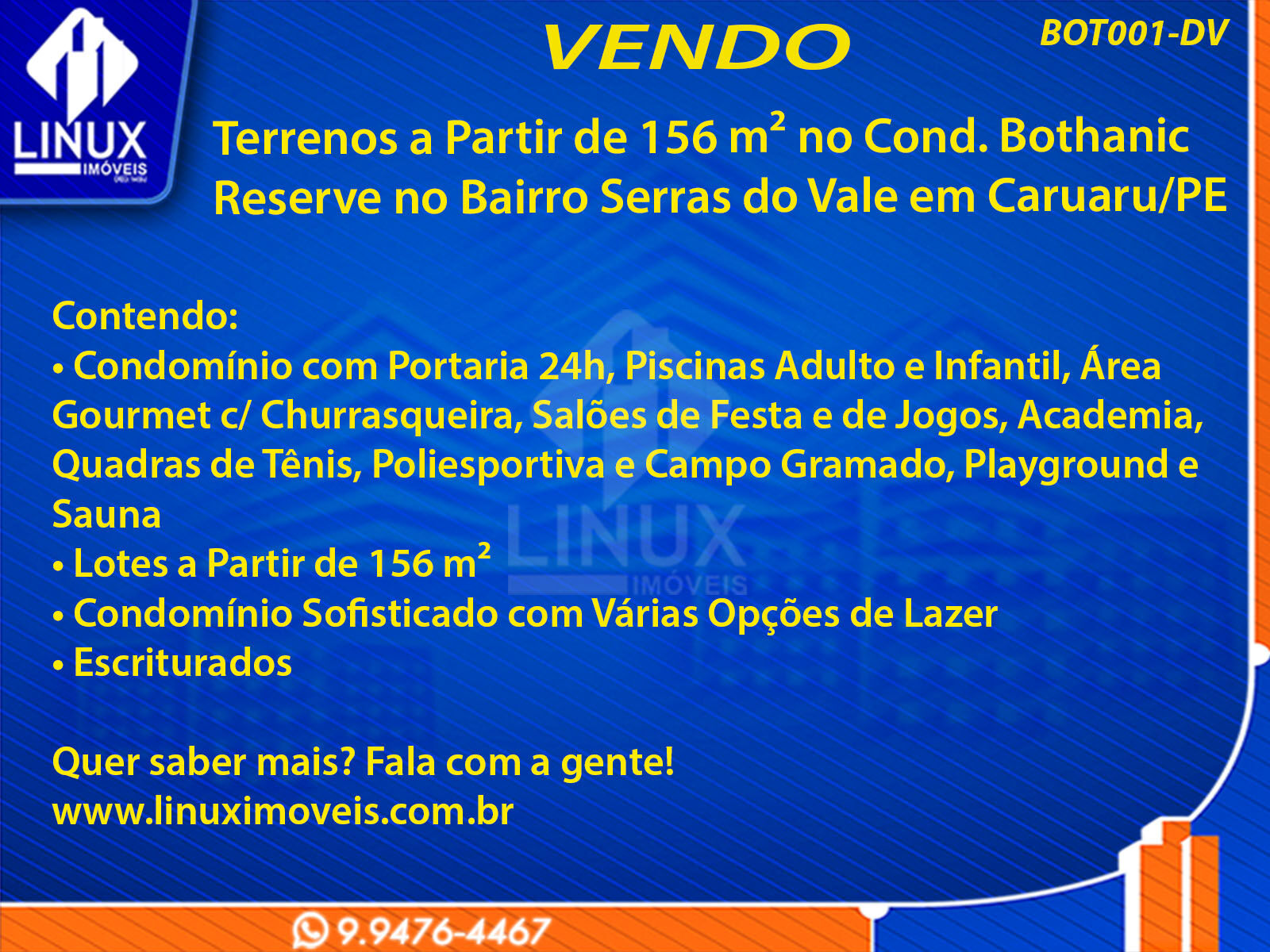 Terrenos no Cond. Bothanic Reserve a Partir de 156 m² no Bairro Serras do Vale em Caruaru/PE