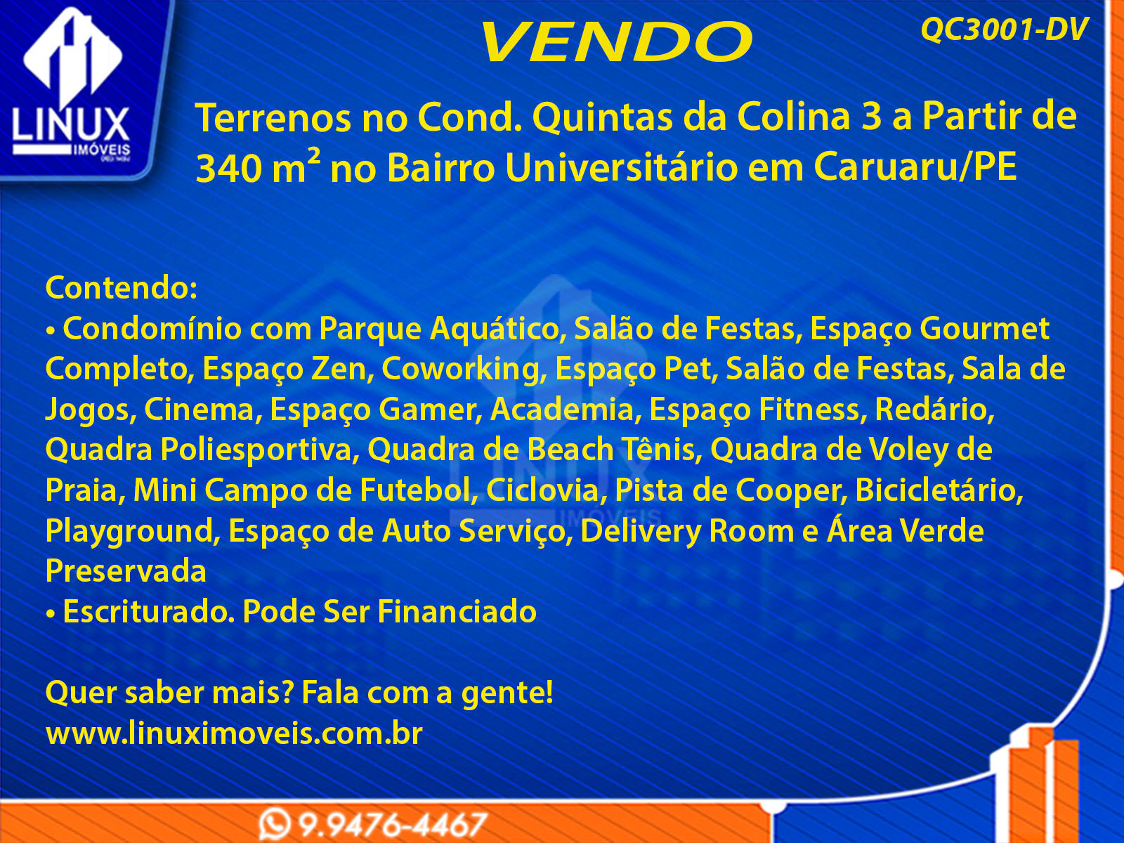 Terrenos no Cond. Quintas da Colina 3 à Venda (QC3001-DV)
