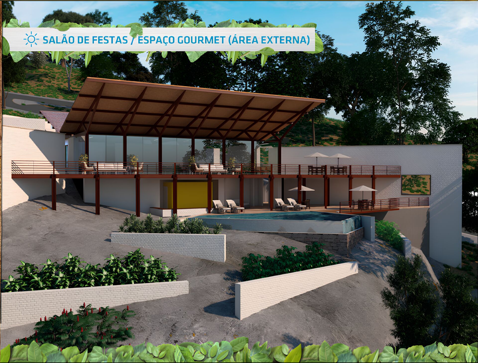 • Condomínio com Portaria 24h, Piscina, Espaço Gourmet, Cachaçaria, Salão de Festas, Quadra de Tênis, Capela, Bosque com Trilha, Terraço Panorâmico, Playground