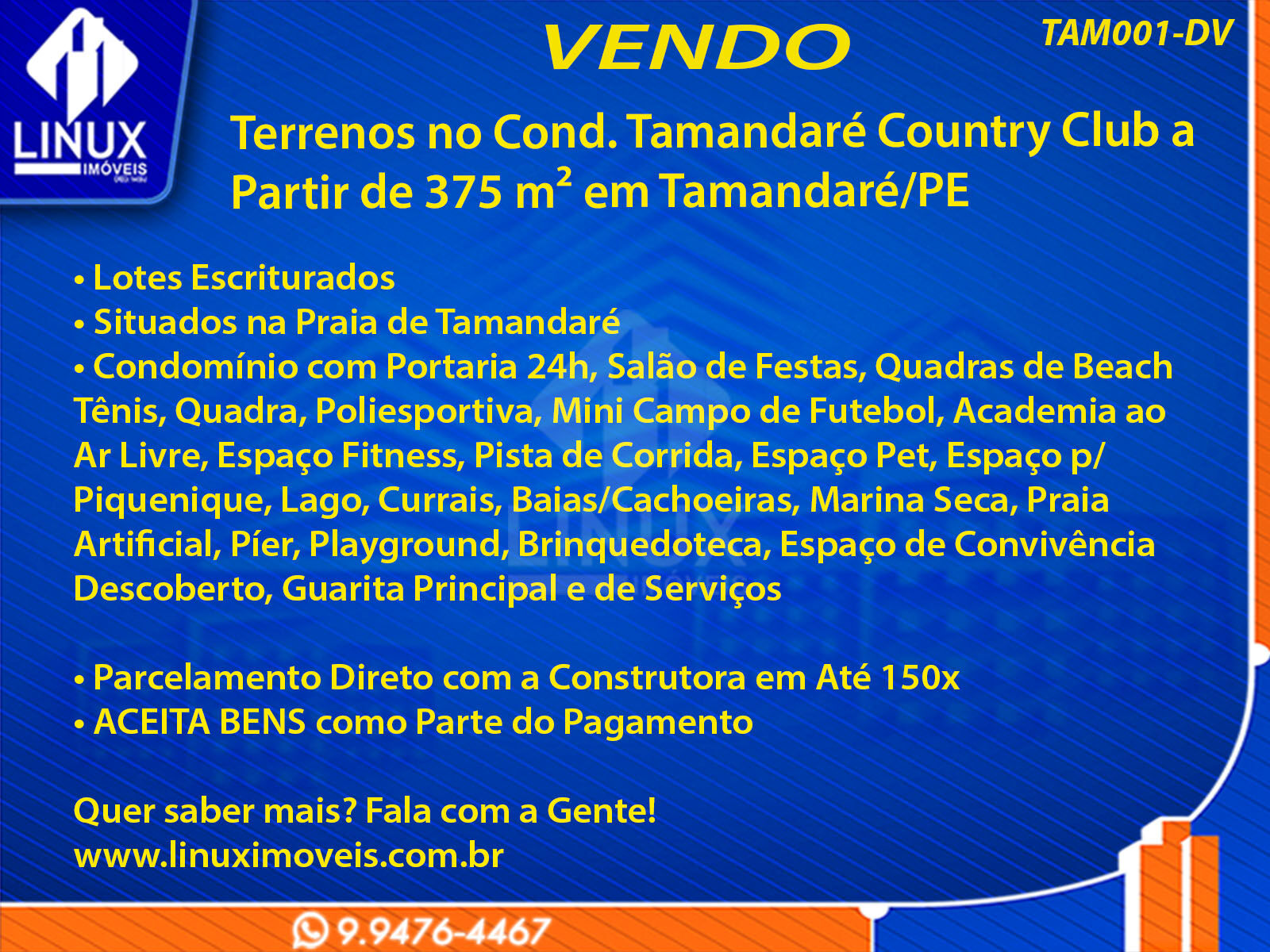 R$280.660,00 / VENDATerrenos no Cond. Tamandaré Country Club em Tamandaré/PE à Venda (TAM001-DV)